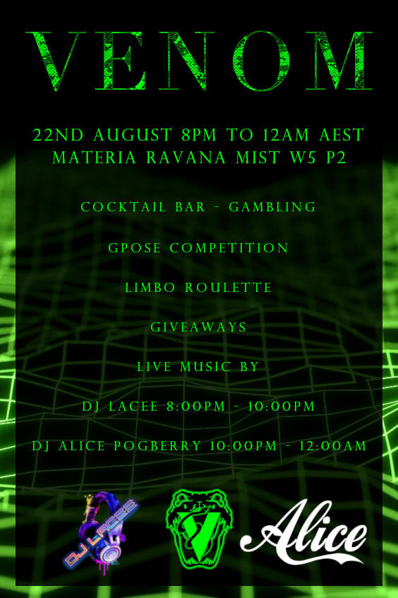 Venom is a non-profit group set up for the entertainment of the ffxiv community only. All services provided are to be paid in full using in-game currency only, any real-world transfer of money is strictly